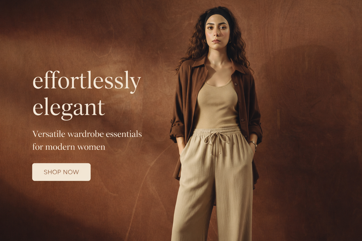 BROWN BUTTON DOWN SHIRT & MID-BLUE WIDE LEG JEANS