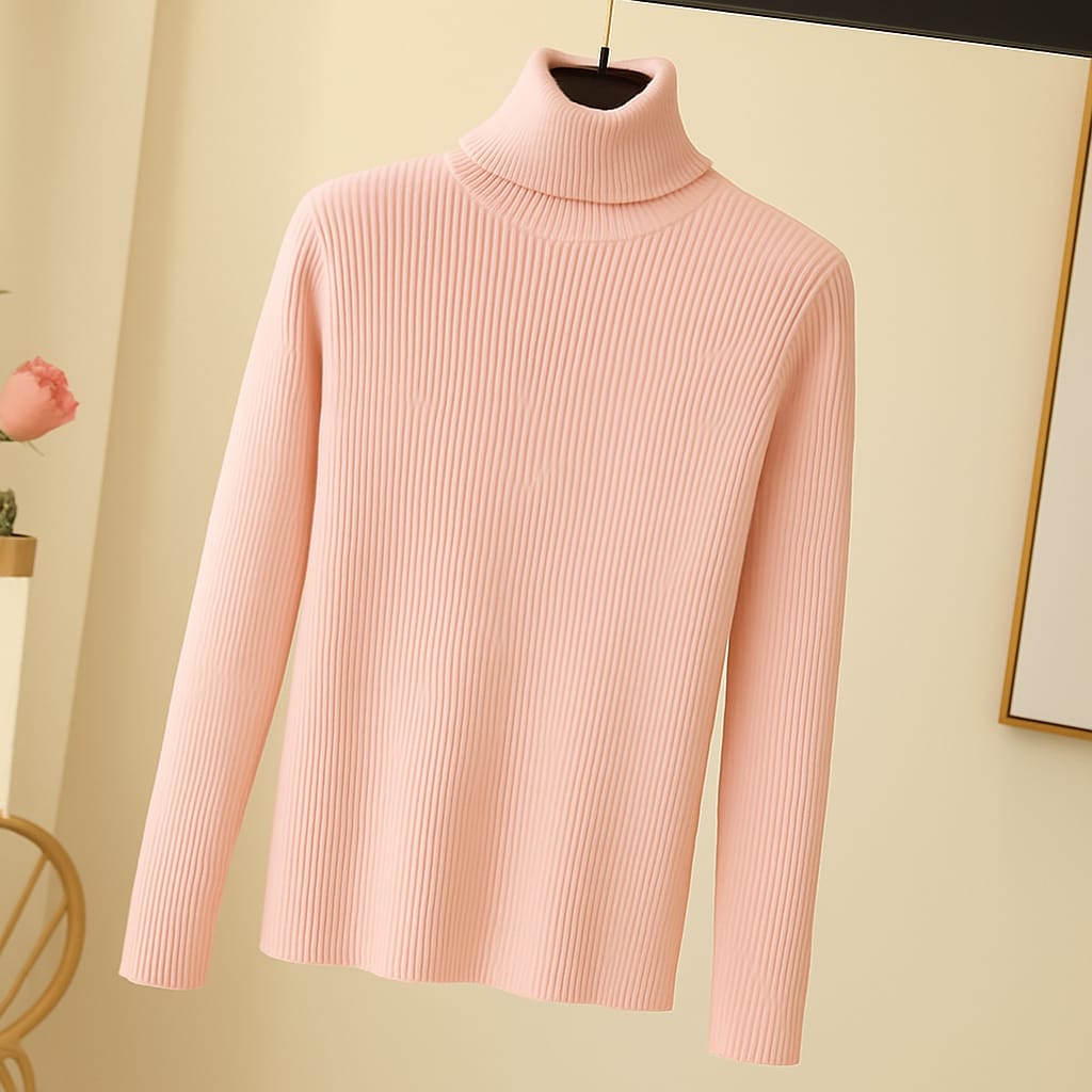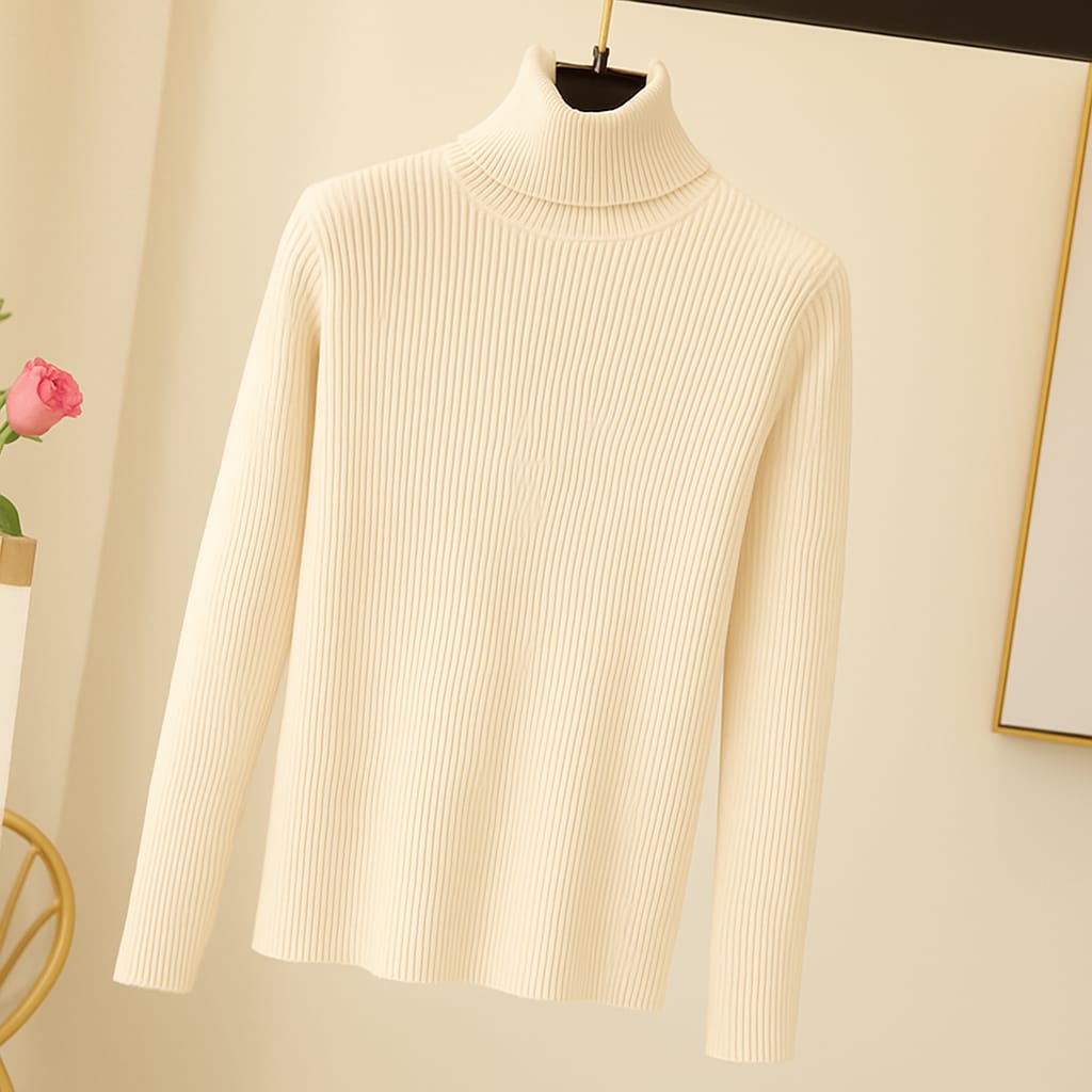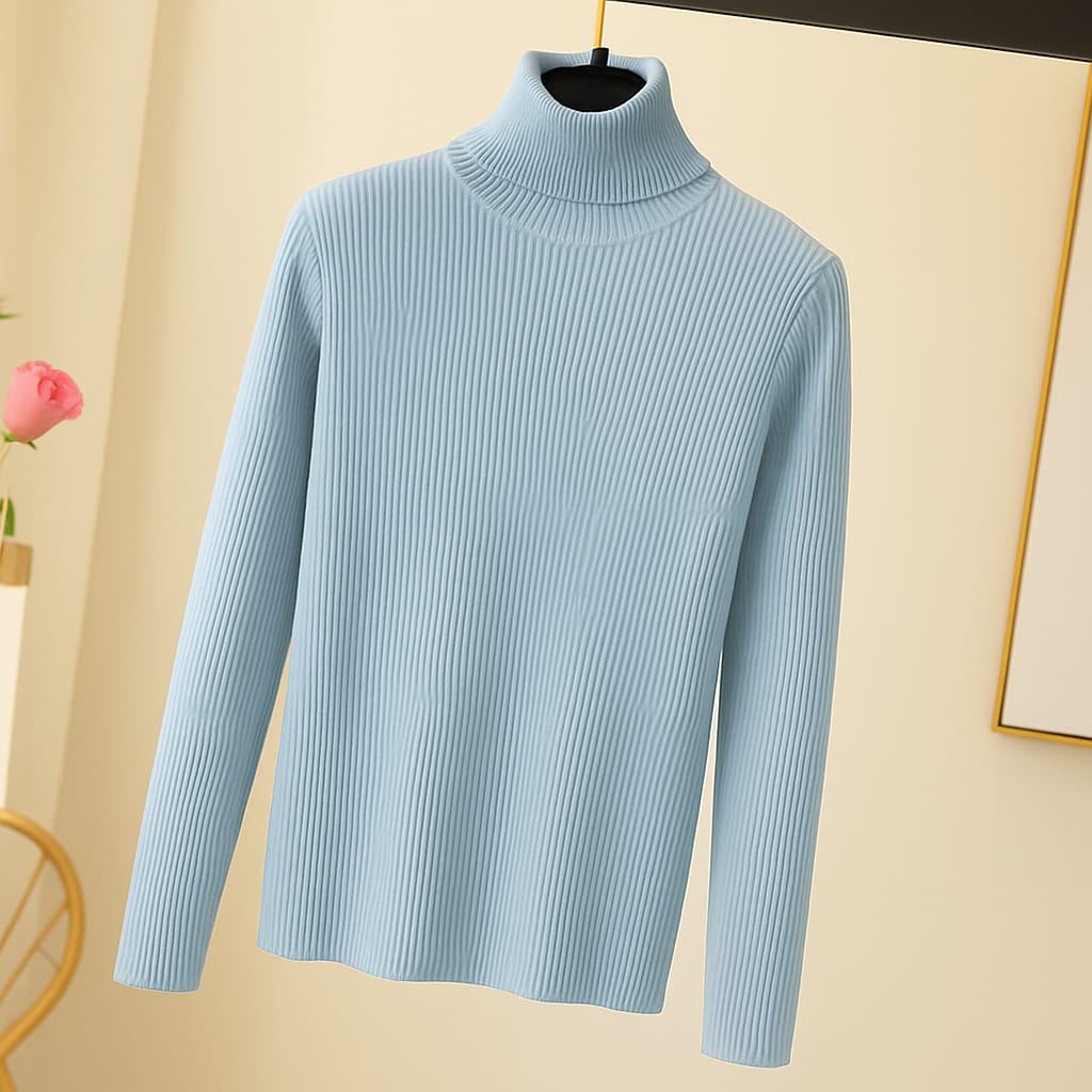 This highneck is crafted from soft rib knit fabric, offering a comfortable and flexible fit. The ribbed texture adds a classic, structured look while providing warmth and coziness. Perfect for layering or wearing on its own, it combines style with comfort for everyday wear.